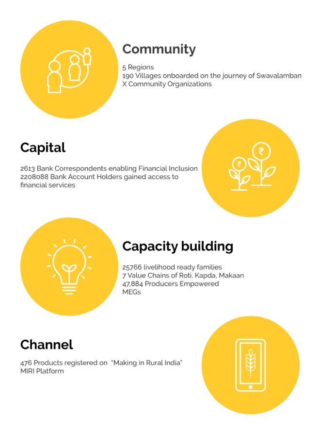 An Integrated and Comprehensive approach around the 4Cs works as a major strength of Drishtee. The 4C framework comprises of: (with the icons, this text can be added)